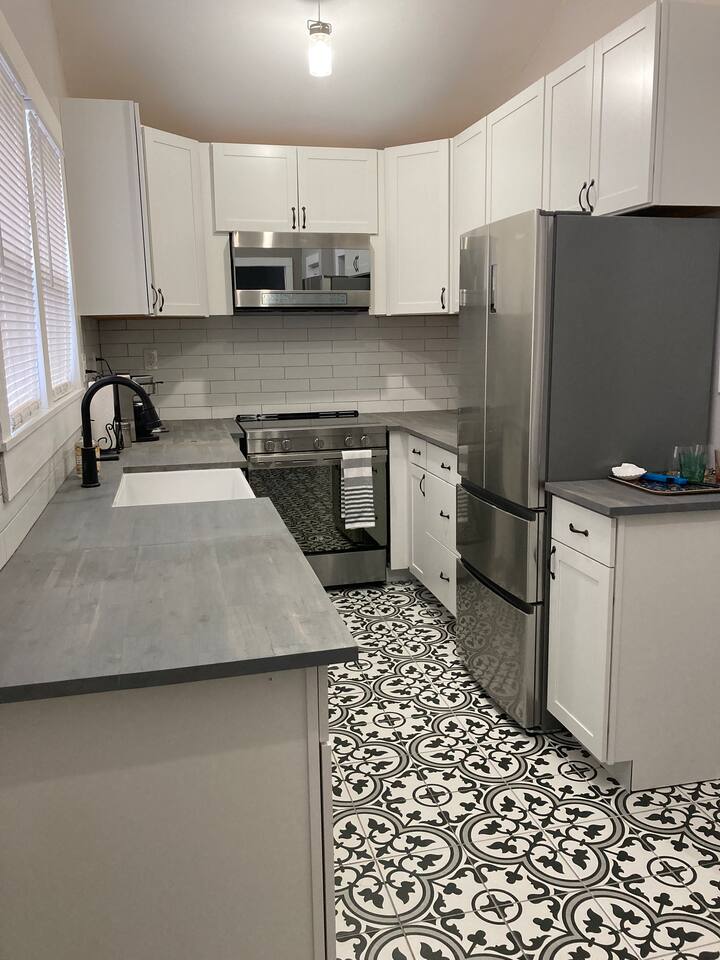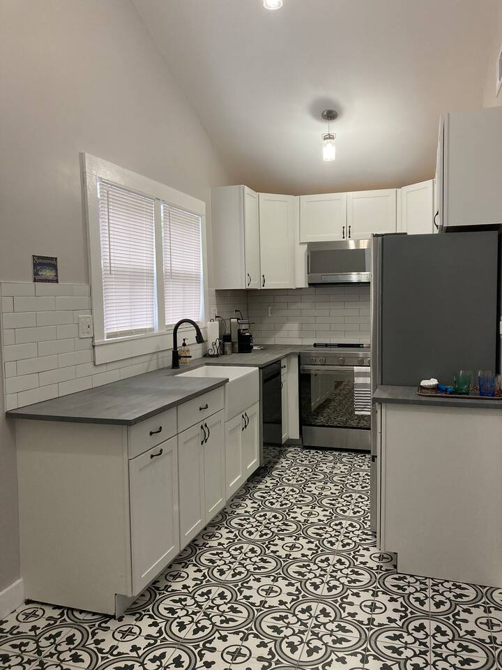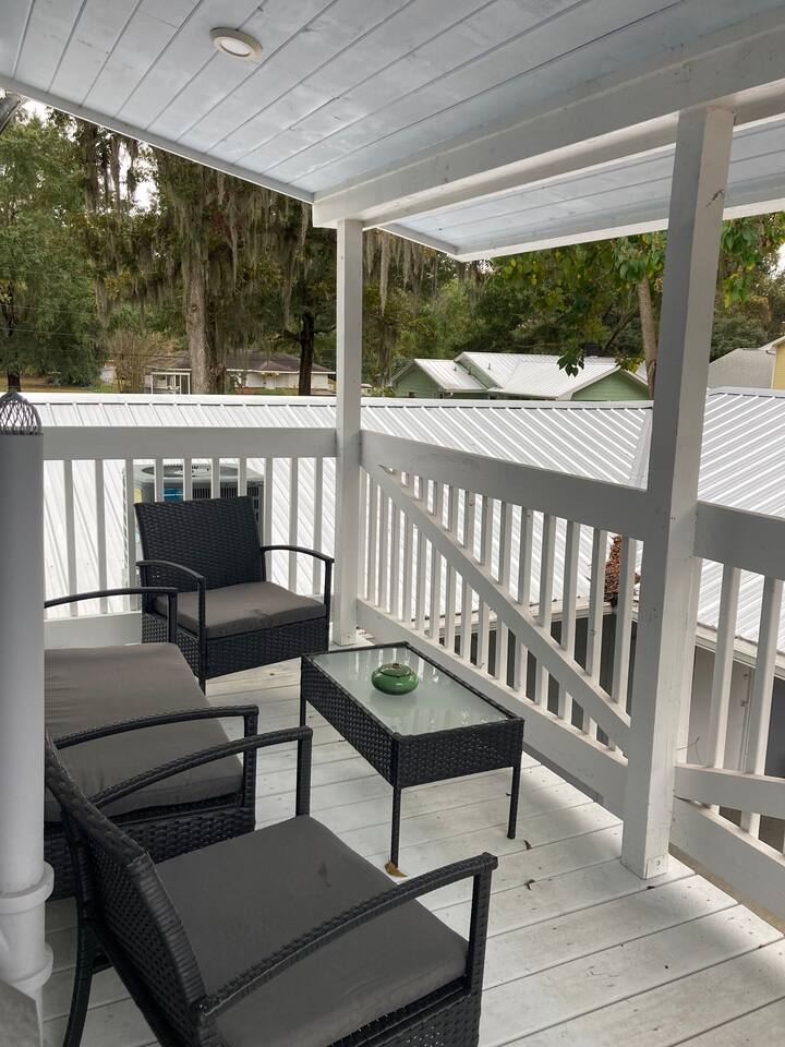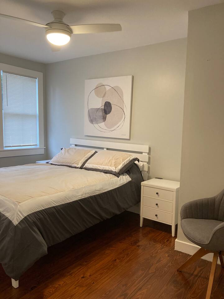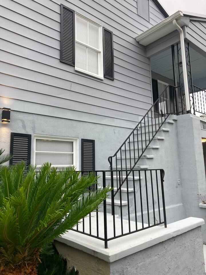 Kick back and relax in this peaceful, centrally-located place. Lovingly renovated upstairs 2 bdrm/1 bath apartment tucked away in a quiet neighborhood. Off-street parking, porches, courtyard, and fire pit add to the feel. This gem is less than 5 mi from the Landmark Historic District (downtown Savannah), within 2 mi you will find shopping, banks, and restaurants; and just 15 mi from Tybee beach. We are experienced hosts, and are local: We are always on hand if you need anything at all.